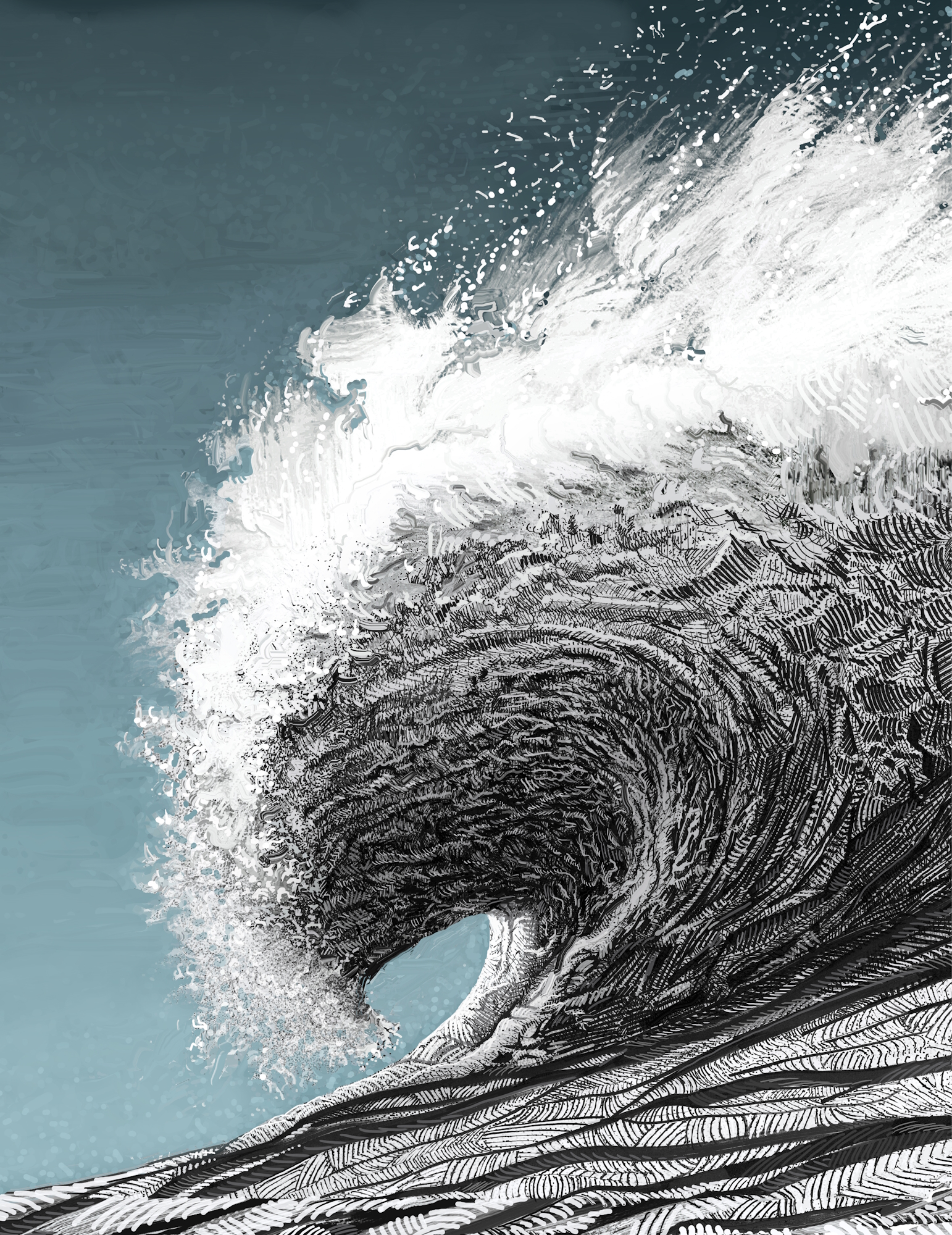 Encre sur papier et dessin numérique